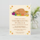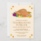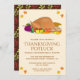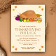 Invite your guests with this elegant Thanksgiving potluck party invitation featuring simple typography and a beautiful turkey meal against a beige background. Simply add your event details on this easy-to-use template to make it a one-of-a-kind invitation. Flip the card over to reveal an elegant leaves pattern on the back of the card.