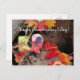 Colourful photo of a turkey amongst leaves graces this postcard. A great way to let family and friends know your thinking of them on Thanksgiving Day!