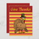 Give Thanks Pilgrim Turkey Cartoon Thanksgiving Invitation- This cute and unsuspecting turkey gobbler doesn't realise he is star of the show for the holiday. The Thanksgiving turkey is all dressed up wearing his dark brown Pilgrim hat with the huge gold buckle and posing nicely. Fun cartoon turkey Thanksgiving dinner invitation for Turkey Day. Turn into your own personalised turkey Thanksgiving invitations with your own personal Thanksgiving greeting, or whatever you wish. The back is in matching autumn colours and ready for your personalised Thanksgiving Dinner information and details. Buy this cartoon turkey pilgrim design on many other Thanksgiving products, not just Turkey Day invitations, as we have this cartoon Thanksgiving design on lots of Thanksgiving party supplies in our Zazzle store.