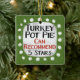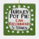 A funny typographic design that says "Turkey Pot Pie: Can Recommend, 5 Stars". It's black and red text on a white rectangle with funky, playful white dots surrounding it, all on a green background.
