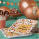 Paper plates with a seasonal fall pattern, Corn, mushrooms and flora. Along with turkeys and scarecrows to honour the Thanksgiving tradition.