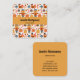 A business card with a seasonal fall pattern, Corn, mushrooms and flora. Along with turkeys and scarecrows to honour the Thanksgiving tradition.
