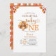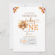 Elegant Orangw Gingham Rustic Watercolor Wildflower Turning One Birthday Invite