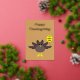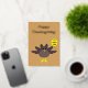 This awesome Foil Thanksgiving card features a funny cartoon of a turkey with big black eyes, a small yellow beak and tail feathers sticking up. The feet are facing in opposite directions making the turkey look clumsy. The turkey is holding a yellow balloon with a message inside that says “it’s turkey time”. There is custom text inside so you can personalise this card. The custom text on the front is in beautiful gold foil.