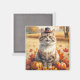 Turkish Angora Cat Autumn Leaves Thanksgiving Art Magnet