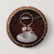 Button with an artistic design of Turkish coffee being poured into a cup. Brown mosaic background with golden scrolled border.