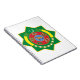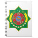 The State Emblem of Turkmenistan was created after Turkmenistan gained independence from the Soviet Union in 1991. Like other post-Soviet republics whose symbols do not predate the October Revolution, the current emblem retains some components of the Soviet one such as cotton, wheat and rug. The eight-point green starburst (known as the Rub El Hizb (۞), a symbol of Islam, to which a majority of Turkmen profess) with golden edges features in its centre a red circular disc which carries sheaves of wheat, five carpet guls, and centred upon that a smaller blue circle with a lifelike (rather than heraldically stylised) depiction of former President Saparmurat Niyazov's pet Akhal-Teke horse Yanardag, a source of pride for the Turkmen people. A round variant of the emblem was used from 1992 until 2003, when President Saparmurat Niyazov proposed to change its appearance and said that the ancient Turkmen octagon has been considered to be a symbol of abundance, peace and tranquillity.