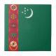 This design consists of the Turkmen flag cleverly reshaped to fit the square tile surface. A decorative and useful item that would make a perfect gift for those who like to remember Turkmenistan.