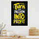 Inspire yourself with our motivational wall art featuring the empowering phrase "Turn Your Passion Into Profit." This striking poster serves as a daily reminder to pursue your dreams and embrace your entrepreneurial spirit. Perfect for your workspace or home office, it adds a vibrant touch while encouraging creativity and ambition. Transform your environment and ignite your passion for success!
