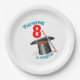 Magic themed 8th birthday party plates with magician hat, magic wand design.