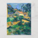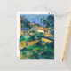 A postcard with the fine art painting by the French Post-Impressionist artist Paul Cézanne (1839-1906), Turning Road at Montgeroult (1898). A painting depicting a lush landscape on a hillside with houses in a small French village.