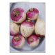 The turnip or white turnip (Brassica rapa subsp. rapa ) is a root vegetable commonly grown in temperate climates worldwide for its white, bulbous taproot . Small, tender varieties are grown for human consumption, while larger varieties are grown as feed for livestock .