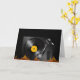 This design is a turntable. The turntable is black and an album on it ready to play. This turntable design looks great on this Greeting Cards