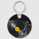 This design is a turntable. The turntable is black and an album on it ready to play. This turntable design looks great on this Keychain
