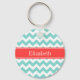 Turq / Aqua Wht Chevron Coral Red Name Monogram Key Ring