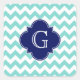 Turq / Aqua Wht Chevron Navy Quatrefoil Monogram Square Sticker