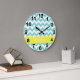 Turq / Aqua Wht Chevron Yellow Name Monogram Large Clock