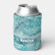 Turquoise Abstract Paint Pour Art Monogram Can Cooler