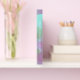 Beautiful abstract background (pastel colours: blue, light green and purple mauve) with a half-transparent white square tag (tiny transparent border) for name, date and birthday on hard cover guest book. All is customisable. Available in spiral notebook. Don't forget the whole collection of abstract pattern guest books.