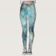 Turquoise Abstract Watercolor Gold Glitter Leggings