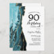 Turquoise Agate Gold White 90th Birthday Invitation