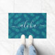 Turquoise aloha script pineapple pattern modern doormat