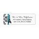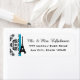 ADD YOUR NAME TO THESE CHIC AND PRETTY PARISIAN AND FRENCH THEMED RETURN ADDRESS LABELS WITH AN EIFFEL TOWER ON AN ELEGANT BLACK AND WHITE DAMASK FLORAL BACKGROUND AND A PRINTED RIBBON LOOK DESIGN IN A BRIGHT TURQUOISE BLUE HUE. DESIGNED BY CHRISSY H. STUDIOS, LLC. ALL RIGHTS RESERVED.