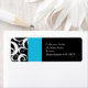 Turquoise and black damask swirls address labels. Fully Customisable. Matching wedding stationery is available from this store.