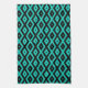 Turquoise and black diamond pattern tea towel