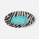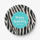 Turquoise and Black Zebra Stripe Birthday Party Paper Plate