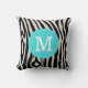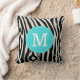 Turquoise and Black Zebra Stripe Custom Monogram Cushion