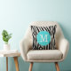 Cute trendy girly chic turquoise and black zebra stripe custom monogram pillow. Add a personalised, stylish zebra print pillow to your living room or bedroom. Change the font style, move text, and more by clicking on the "Customise It" button.
