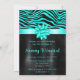 Turquoise and Black Zebra Stripes Sweet Sixteen Invitation