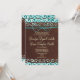 These rustic country wedding invitations feature a chocolate brown distressed vintage looking paper with an elegant scroll print edge and a teal blue twine bow across the top with turquoise scroll print on both the top and bottom borders of the invitation. The bow is just a printed design. The back of the announcement has the same country style brown and turquoise scroll design. This is a unique and eye-catching wedding invitation design. Just add your own wedding invitation wording to this country wedding invitation template. These are perfect for barn weddings, country style weddings, vintage or rustic themed weddings. Great for country brides using brown and turquoise wedding colours.