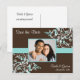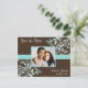 Add your own photo to our custom Save the Date postcards with an elegant brown and turquoise floral swirl design. Easy to use template - just add your photo, and enter the names of the Bride & Groom, along with the wedding date in the space provided.