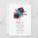 Trendy turquoise - teal and burgundy floral wedding invitation. Ideal for any given theme or garden wedding.