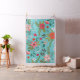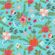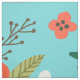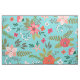 Vintage hand drawn cottage chic flower pattern print fabric in accents of coral pink, turquoise blue (teal) and burnt orange.