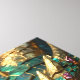 A wall art with a cool close up illustration of a turquoise and metallic gold dragon face with realistic eyes. Fantasy art realism dragon art.