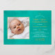 Turquoise - teal and gold geometric floral holy communion invitation designed to be quickly and easily customised to your event specifics. A square-shaped photo is recommended.