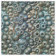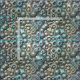 A pattern of abstract and chaotic three dimensional spheres, in hues of turquoise and gold.