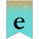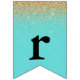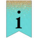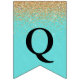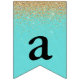 Glam Quinceañera pennant bunting done in turquoise with gold glitter look and gold polka dots. Black text reads Quinceañera.