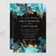Elegant Turquoise and Gold Watercolor Roses clipart with gold glitter and diamonds on black background