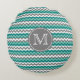 Turquoise and Grey Chevron Zigzag Monogram Round Cushion