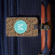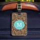 Turquoise and Leopard Print Custom Monogram Luggage Tag