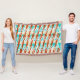 Turquoise and Orange Brown Geometric Pattern Throw Blanket
