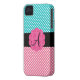 Turquoise and pink polka dots monogram Case-Mate iPhone case