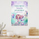 Dive deep into an enchanting undersea adventure with the Turquoise and Purple Mermaid 1st Birthday Welcome Poster! This magical poster sets the scene for a jubilant celebration filled with shimmering scales, swirling seashells, and charming mermaids. The vibrant hues of turquoise and purple transport you to a whimsical world where sea creatures dance and waves glisten under the sun. Let the excitement flow as you welcome guests to a birthday extravaganza that captures the spirit of exploration and wonder. Get ready to make a splash and create unforgettable memories in a sea of enchantment with this mesmerising poster as your guide.