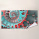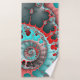 A vibrant, colorful turquoise and red psychedelic abstract fractal swirl design adorns this bright towel set