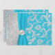 This stunning aqua blue and silver grey floral damask Quinceanera with a PRINTED ON ribbon and crystal and silver grey jewelled medallion with a tiara or crown on it, is shown here on basic paper. It could also be used for the Princess in your life who's celebrating a birthday, sweet sixteen, or Bat Mitzvah. The text and paper choices are fully customisable. If you require any matching items, please email your request to niteowlstudio@gmail.com.