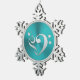 Turquoise and Silver Music Clef Heart Snowflake Pewter Christmas Ornament